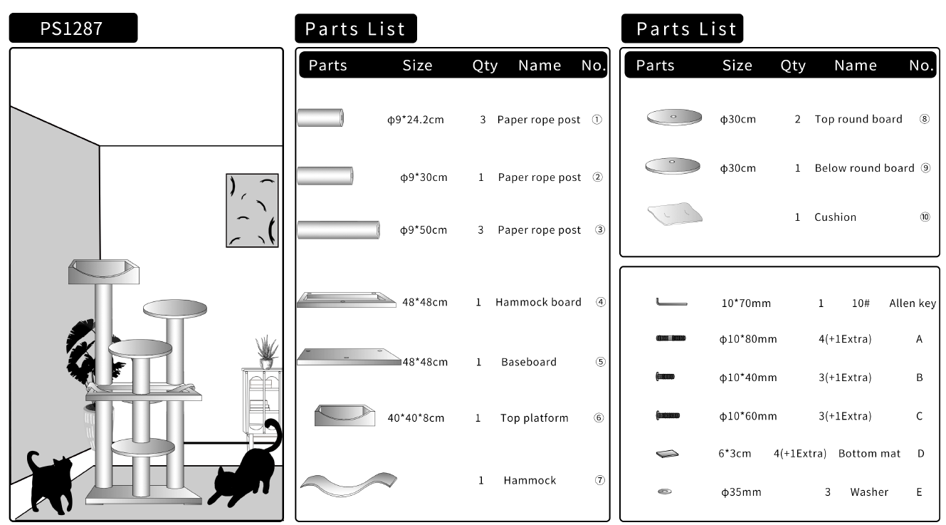 Eenvoudige montage: ons katten klimrek is makkelijk en snel te monteren, duidelijke instructies zijn inbegrepen en binnen een half uur kan uw kat genieten van zijn nieuwe favoriete plek.